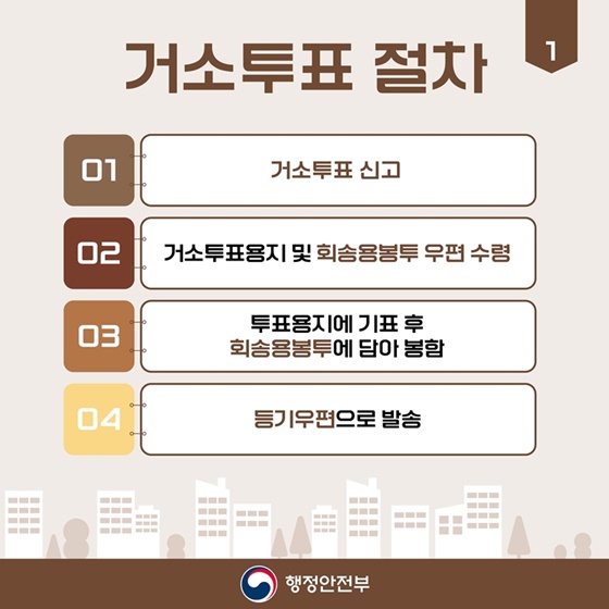 - 거소투표용지 및 회송용봉투를 우편으로 수령