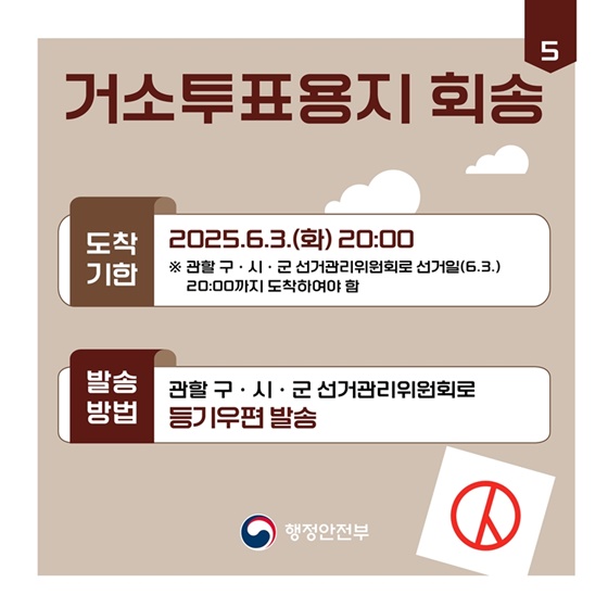 ※ 회송용봉투는 선거일인 2025년 6월 3일(화) 오후 8시까지 관할 선거관리위원회에 도착해야 합니다.